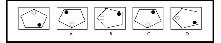 In B both circles are not in the right position, in C the black circle is in the wrong position and in D the white circle in in the wrong position. A meets the requirements for the replication of the image.