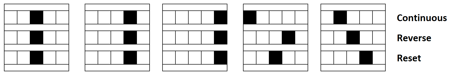 Reset: where the building block returns to an original position when it reaches the edge of the grid. This would be the first column in the frames below: