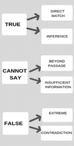 When deciding upon a Cannot Say, there may be more information provided than is included in the passage, often used where there is over generalisation of the details of the passage, even if it seems like a definitive conclusion. Secondly, where there is insufficient information to make the decision between true or false, you use the wording of the statement to help you determine whether an inference can become true, or whether it is too big an assumption.