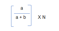 a:b is usually how the ratio is presented, so using the formula, if I stated that there are 30 red and black playing cards on the table and the ratio of black to red cards is 2:3, how many cards are black?