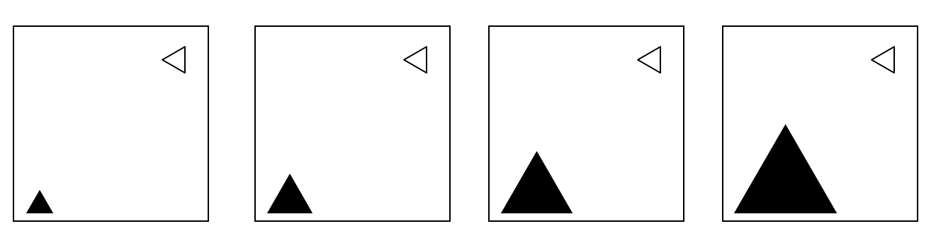 Una caratteristica molto comune dei test di ragionamento astratto è il cambiamento di dimensione. Nell'esempio seguente vediamo che il triangolo nero aumenta di dimensione in ogni fotogramma.