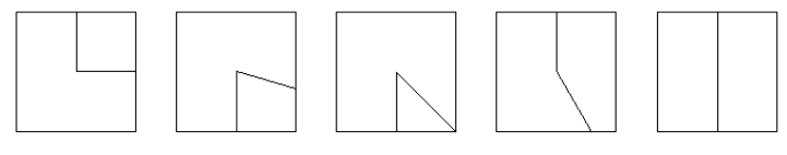 La prima cosa da notare in questa domanda sono le varie forme, i triangoli, i quadrati, i cerchi, le L e le T. La seconda cosa da notare è il loro movimento e la ricorrenza delle forme in tutti i riquadri.